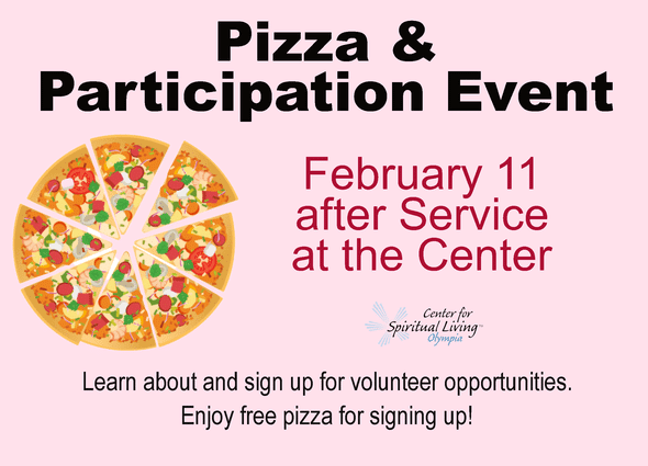 The popular Pizza and Participation Event returns on Sunday, February 11th after Service. This is a great way to learn about and sign up for volunteer opportunities, and enjoy free pizza for signing up.