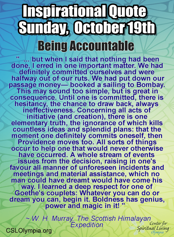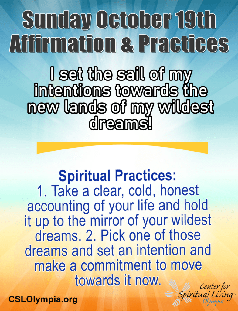 Sunday Service Talk Video Affirmation & Practices and Inspirational Quote This year’s theme is Living Out Loud. For the rest of October, we’ll be exploring prosperity – our own and the Center’s, as we move into our fall Prosperity campaign. This journey calls us to curiosity and a willingness to look at places where we…