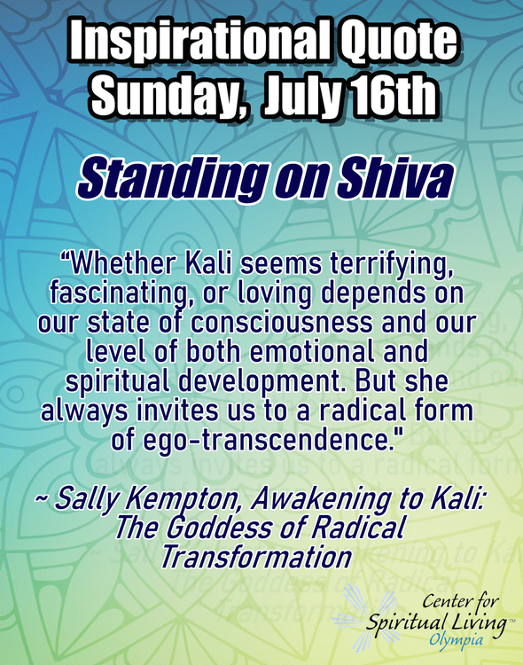 This year we are choosing to Live Out Loud for the annual theme of our talks. For July, we take on the tough task of Speaking Truth to Circumstances. When we find the Truth, we will be troubled; then, being troubled, we will be amazed, and will rule over the entirety. We’ll use the Hindu myth of Kali and Shiva to explore standing in Truth.