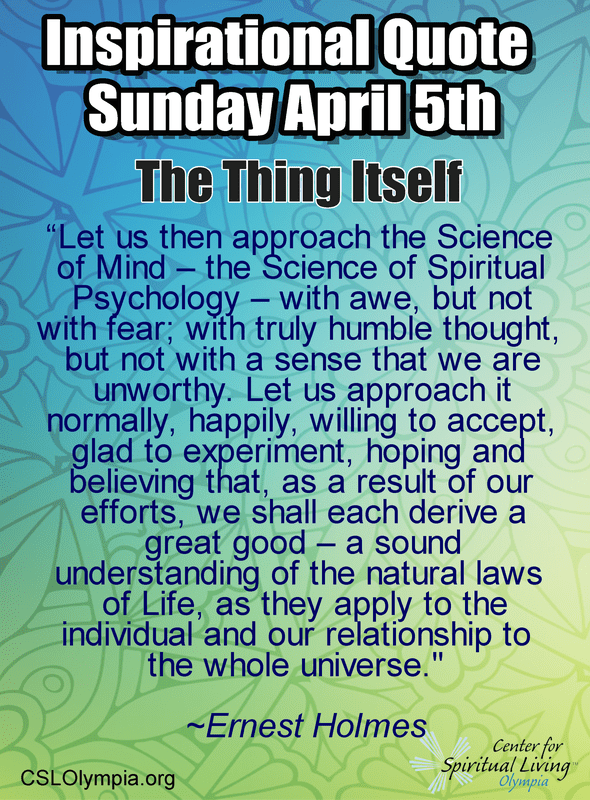 We begin by looking at what Ernest calls “The Thing Itself” – a non-traditional phrase for that Great Cosmic Thing -whether we call it God, Spirit, Tao, Allah, or any of the other dozens of names. This is a look at the nature of The Thing Itself, at the way It works through impersonal and universal principles.